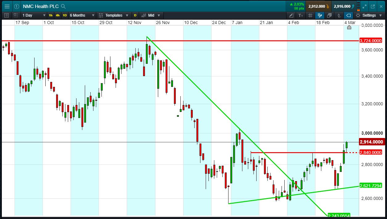 Will NMC Health turn, or will it continue to rise towards 3724p?