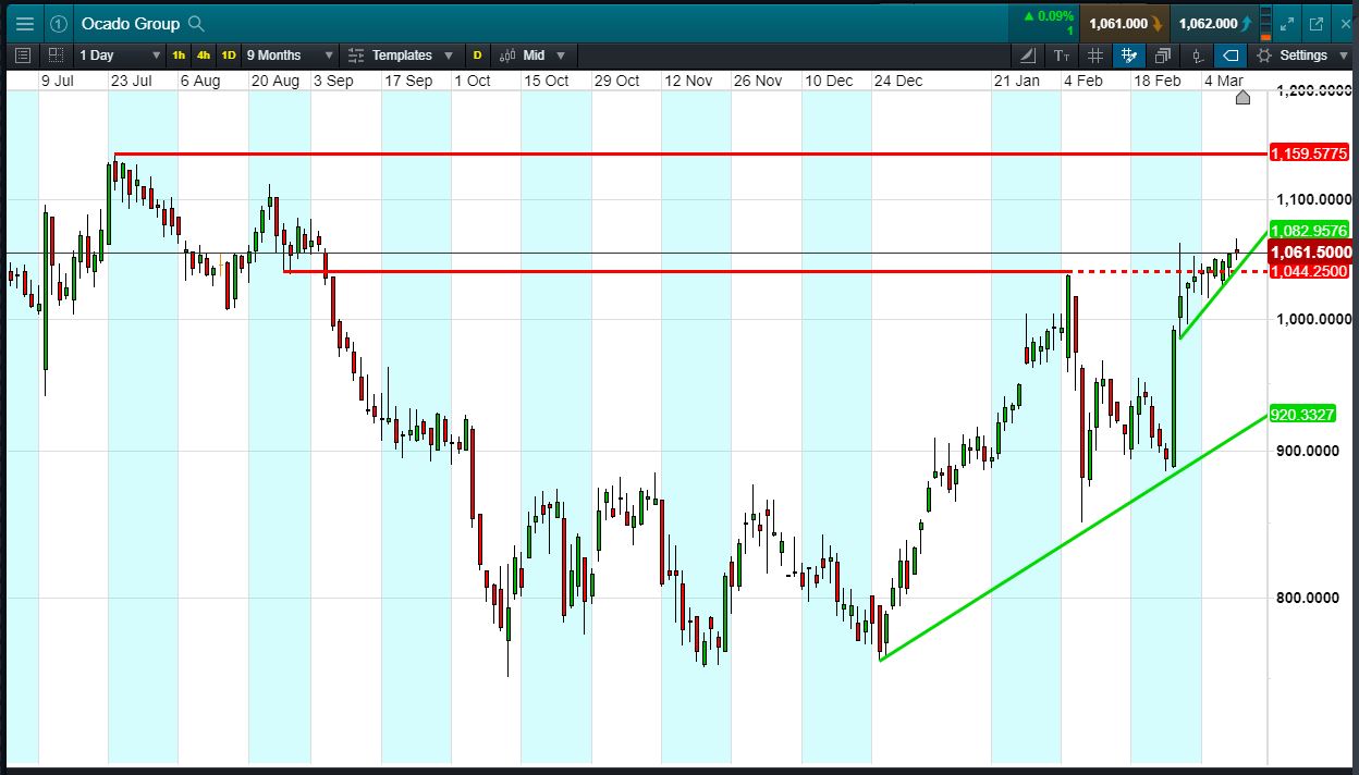 Will Ocado turn, or will it continue to rise towards 1159p?