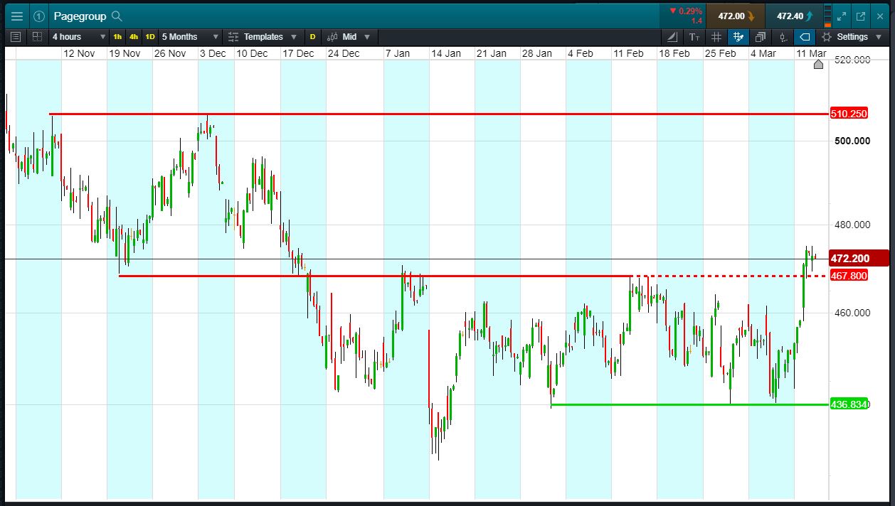 Will PageGroup turn, or will it continue to rise towards 510p?
