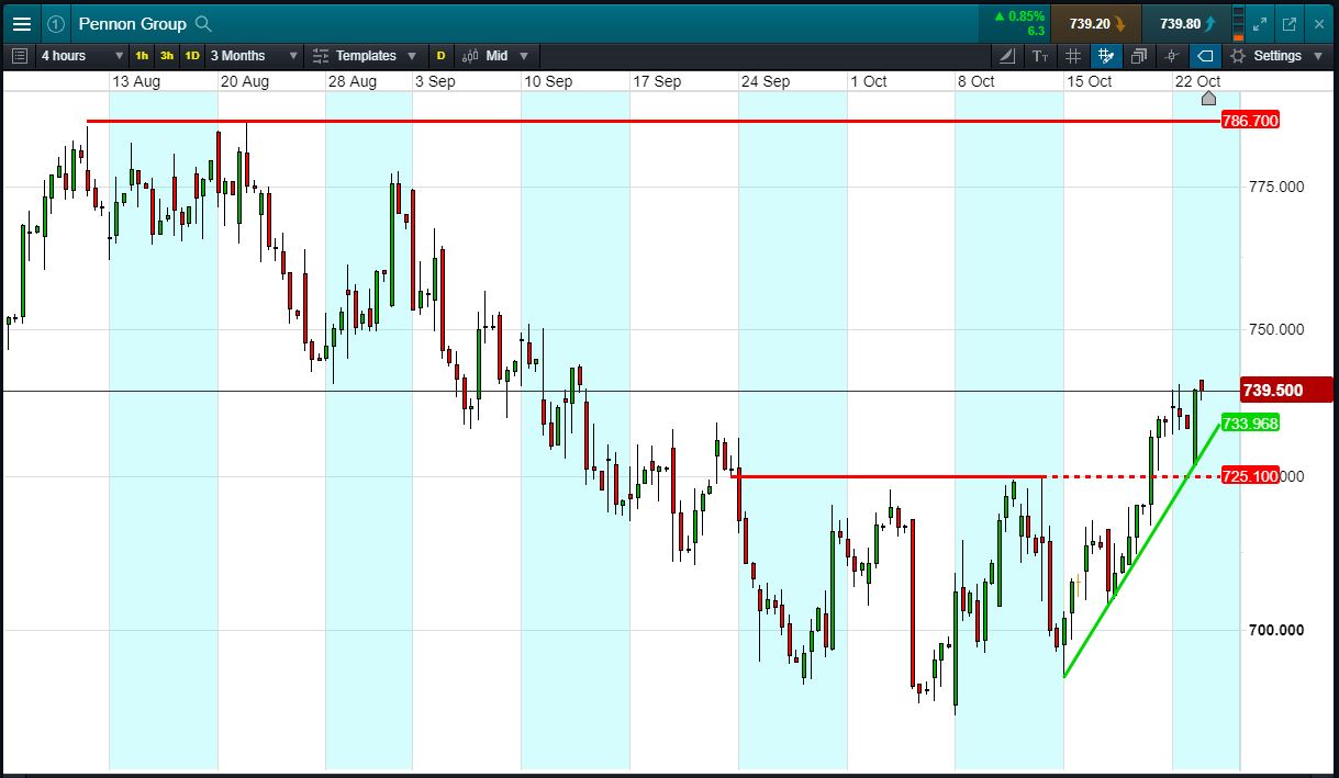 Will Pennon turn, or will it continue to rise beyond recent 740p highs?