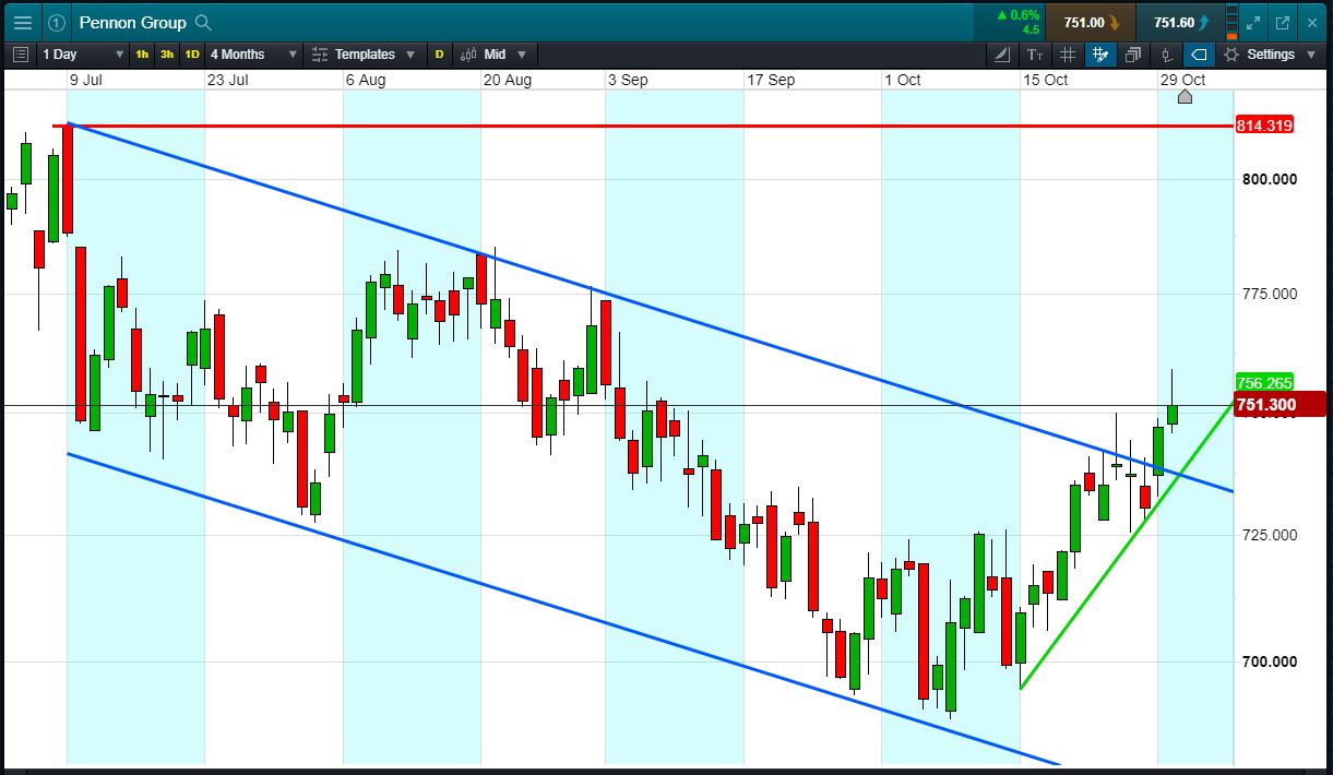 Will Pennon turn, or will it continue to rise beyond 751p highs?