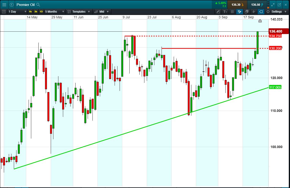 Will Premier Oil turn, or will it continue to break upwards beyond 137p?
