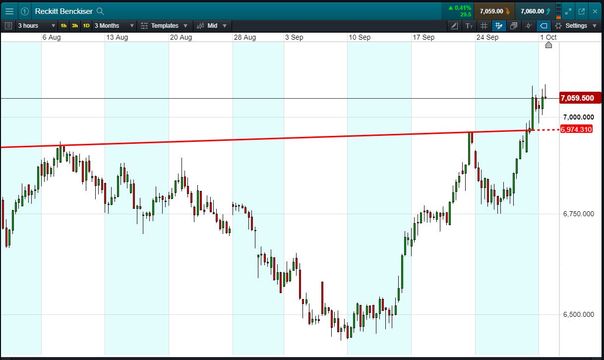 - The chart shows the last 6 week’s price action for Reckitt Benckiser.