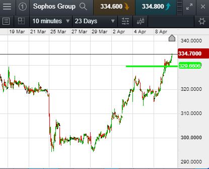 Will Sophos turn, or will it continue to rise towards Feb highs of 355p?