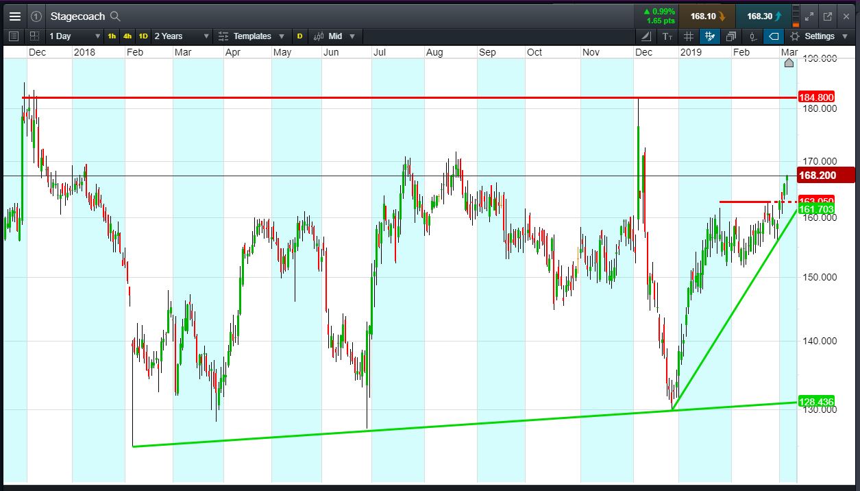 Will Stagecoach turn, or will it continue to rise towards 184p?