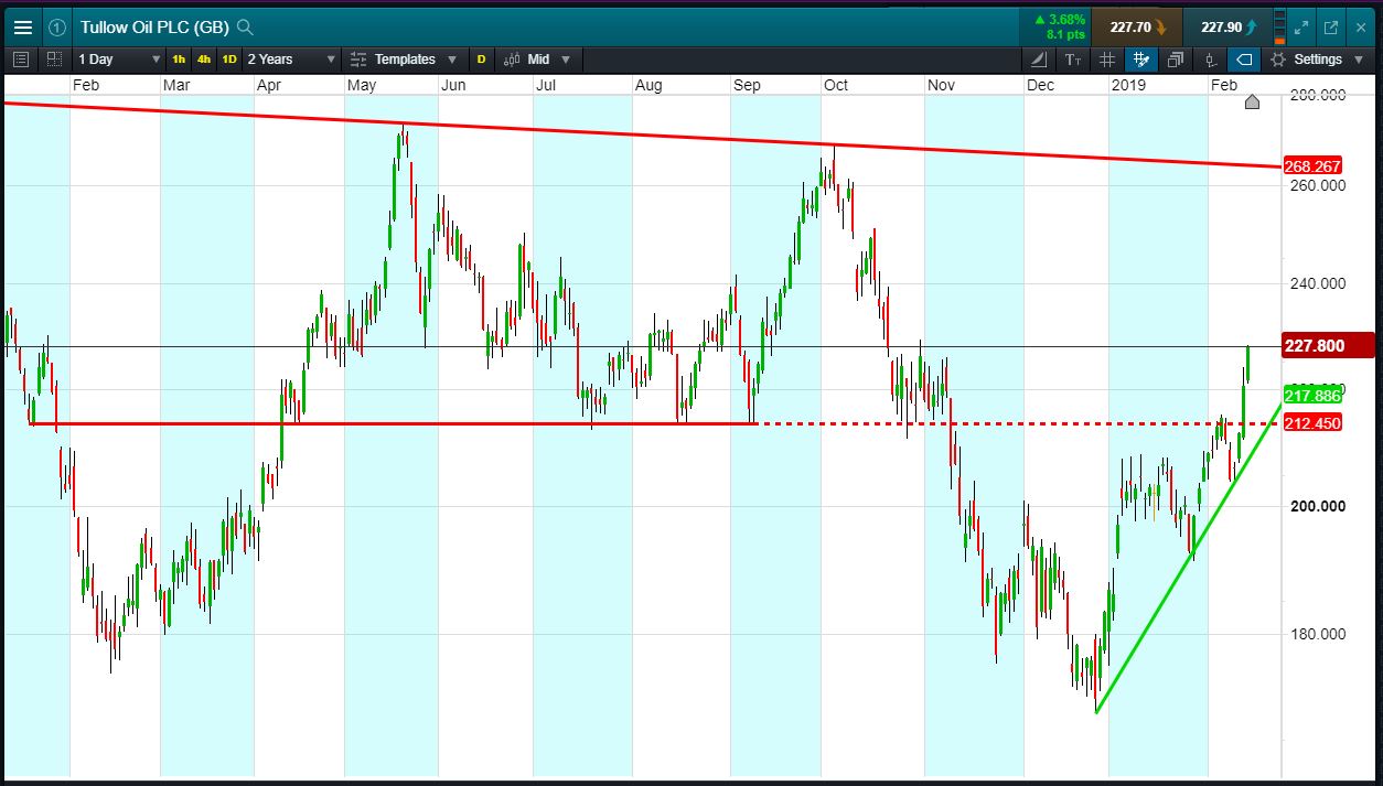 Will Tullow Oil turn, or will it continue to rise towards 268p?