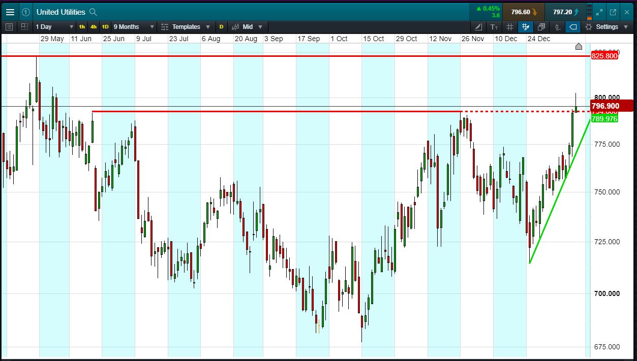 Will United Utilities turn, or will it continue to rise towards 826p?