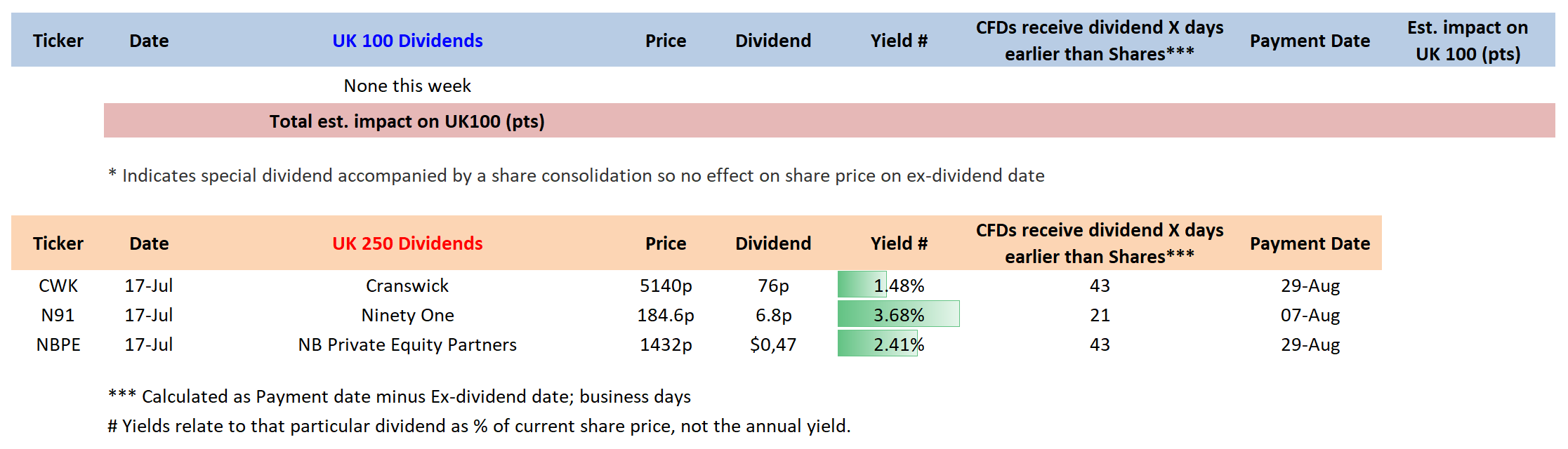 UK 100 companies going ex-dividend on 17th July 2025: