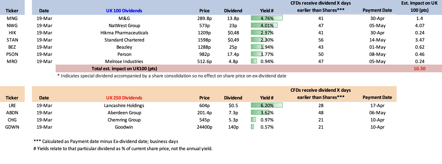 Upcoming UK100/250 Dividend List