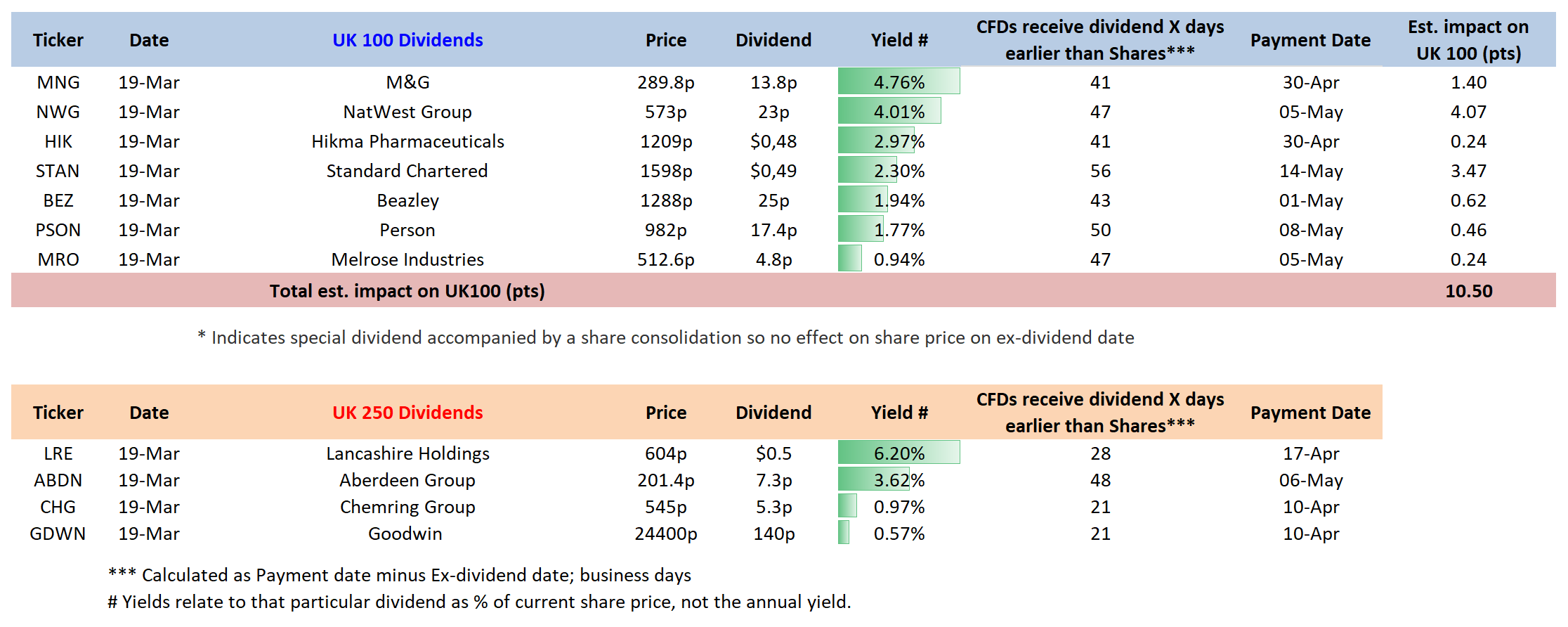 Upcoming UK100/250 Dividend List