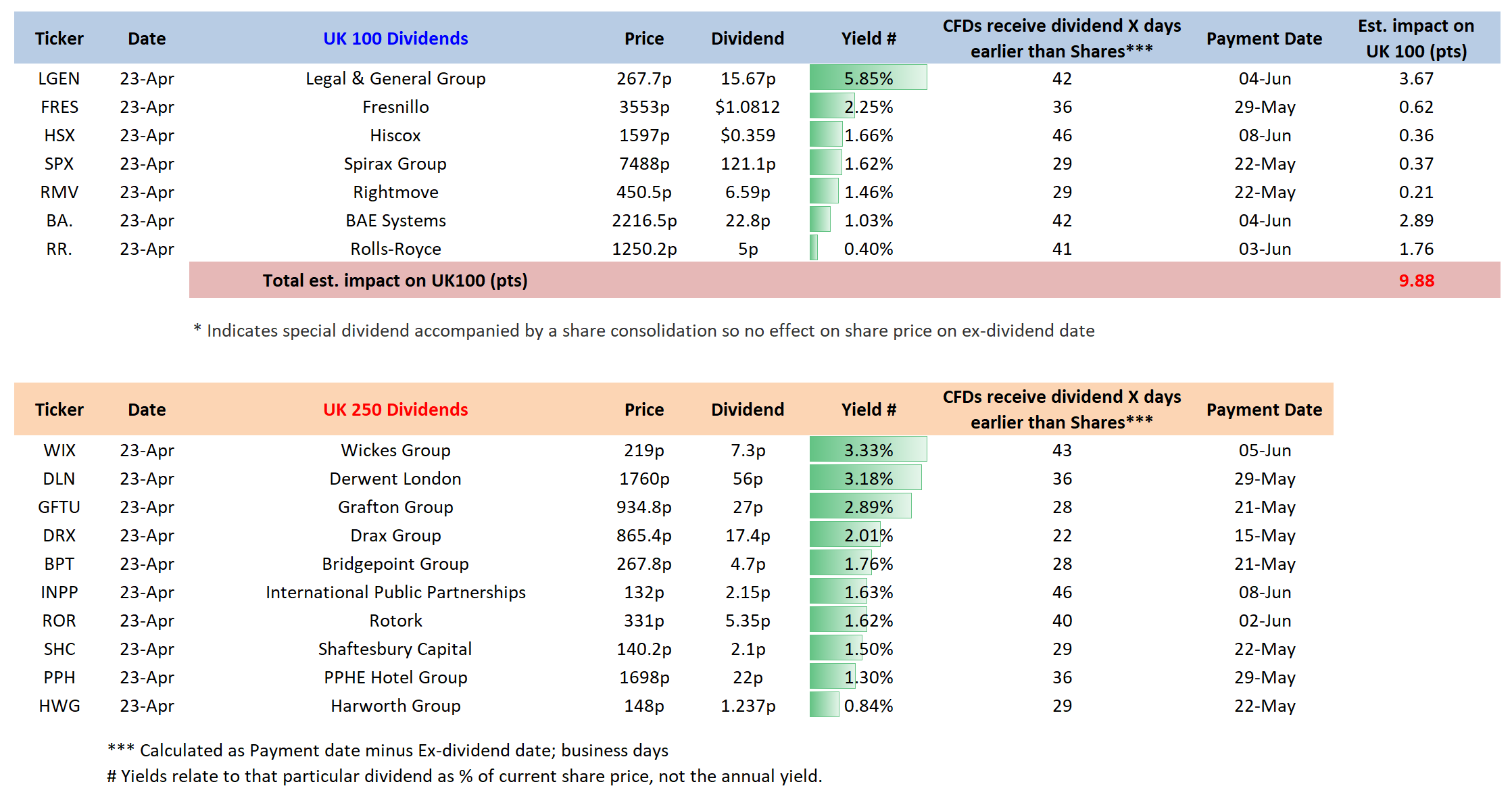 UK 250 companies going ex-dividend on 23rd April 2026: