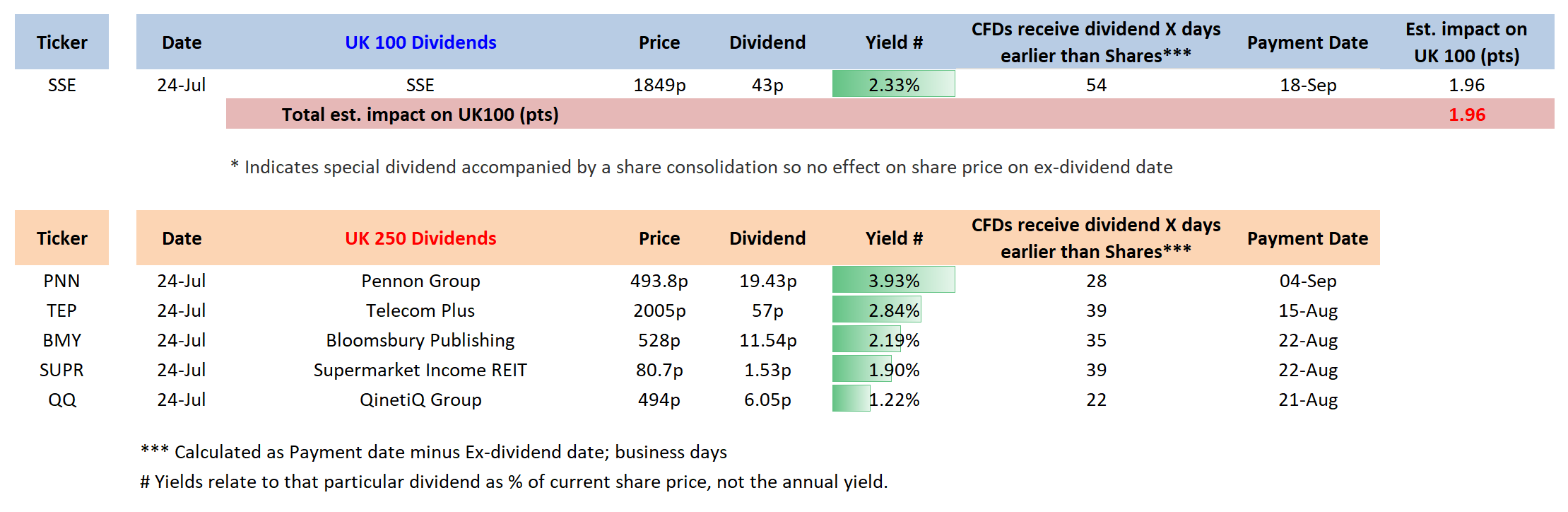 Long/Short UK 100 CFD positions credited/debited 11.00pm Wednesday *