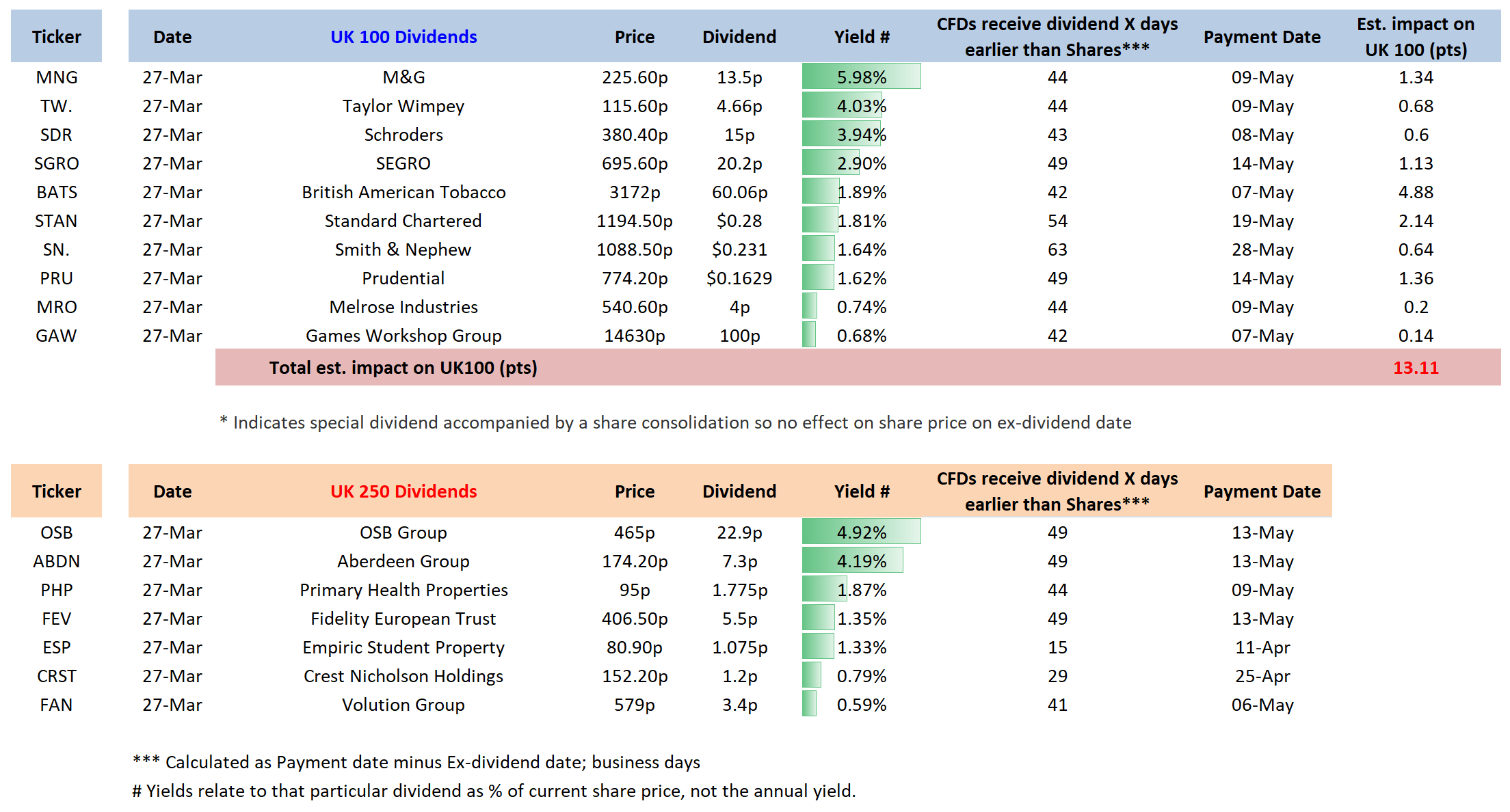 Upcoming UK100/250 Dividend List
