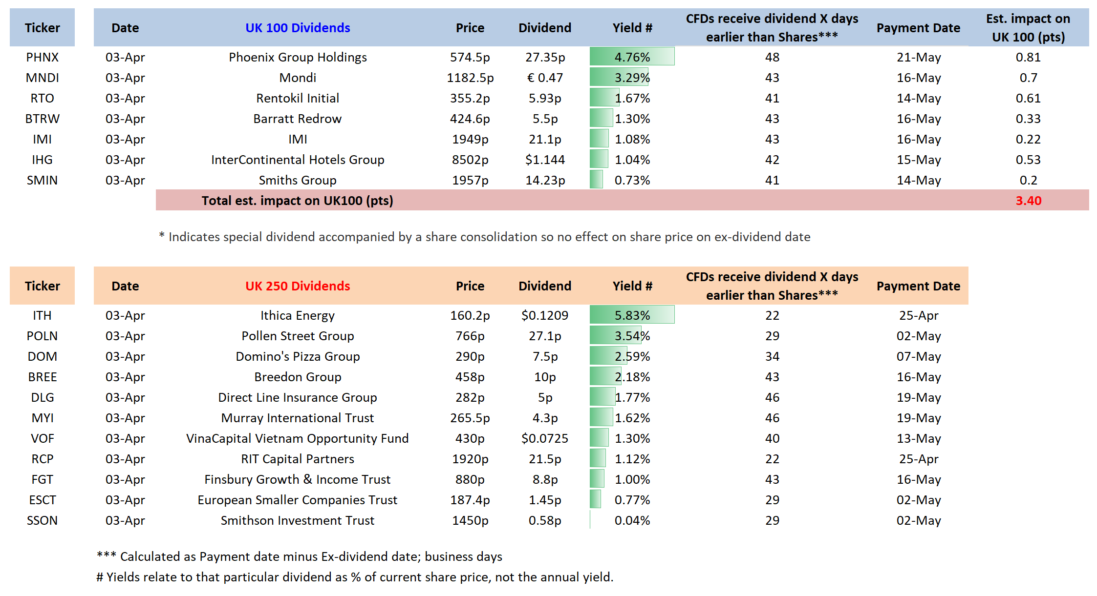 UK 100 companies going ex-dividend on 3rd April 2025: