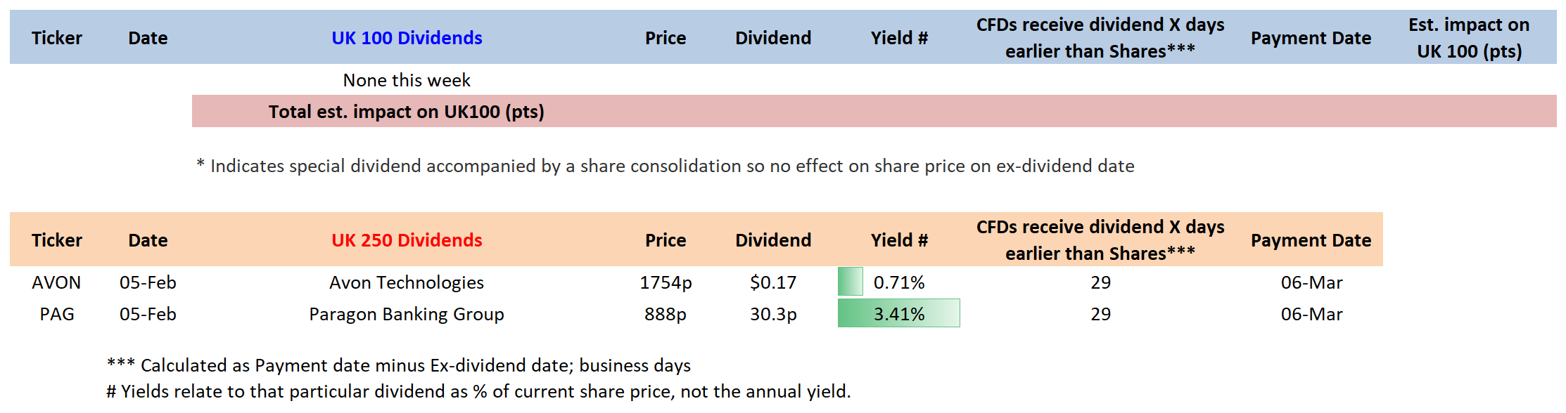 Upcoming UK100/250 Dividend List