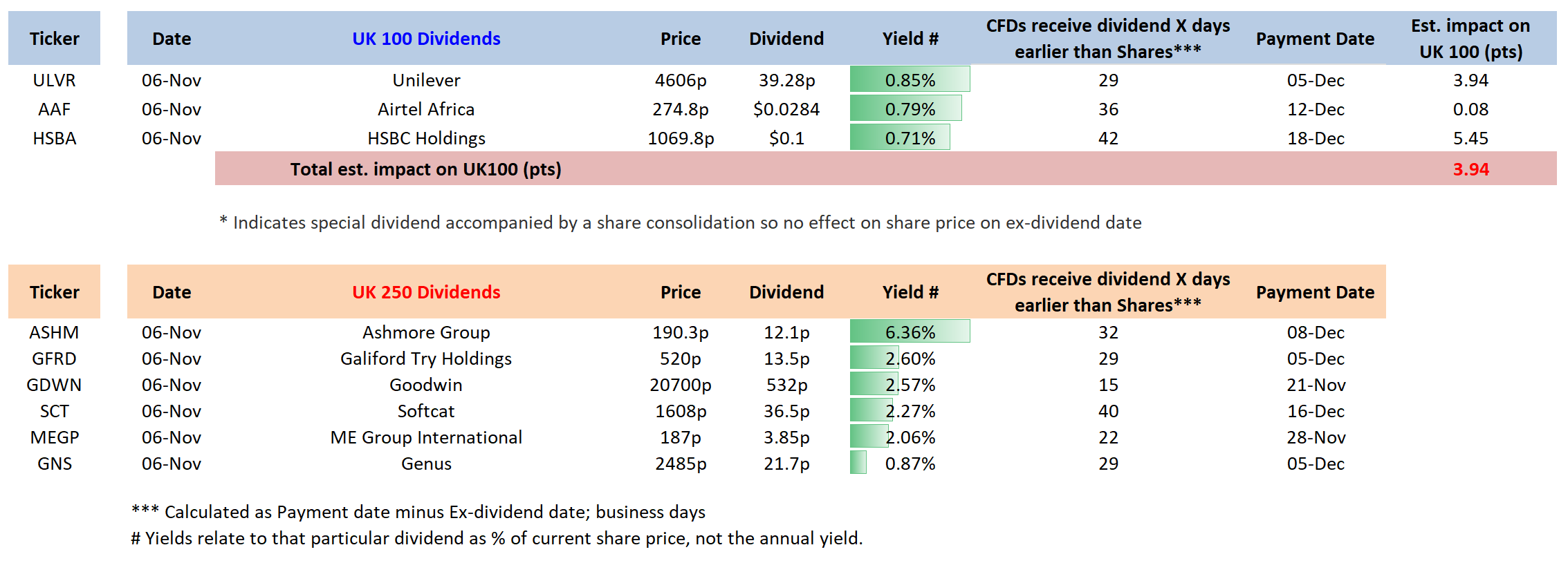 Long/Short UK 100 CFD positions credited/debited 11.00pm Wednesday *