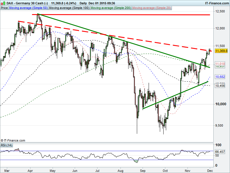 Equity markets posting gains for this first day of the month, but still hindered by major bugbear technical resistance levels. While markets have decided to focus on the positive elements from Chinese PMI data, namely progress in Services as the world’s #2 economy evolves from export- to consumption-led. However, this has only got the indices so far from yesterday’s lows. After strong gains of late, investors may be waiting to see how big ECB President Draghi’s stimulus bazooka is on Thursday, to gauge whether enough to offset the baked-in mid-month hike in US interest rates, something which Friday’s US jobs report is likely to vindicate.