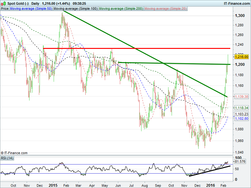 UK Index broken below 5600 to test 3.5yr lows 5500. Wall Street broken below 3 support levels but 15600 holding for now. DAX given up 8800 to trade fresh 16-month lows 8700. Gold made fresh 9-month highs $1220 on renewed safehaven seeking and weak USD.