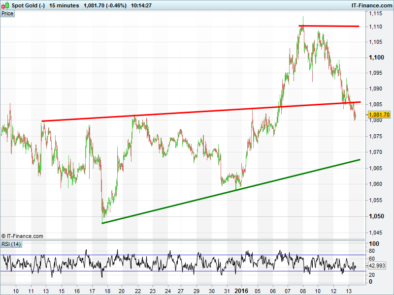 Gold broken back below $1085 with the rebound having been capped at $1100. Back to rising support? Safehaven demand has waned as markets bottomed