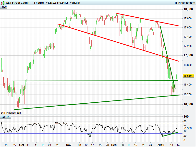 US Dow Jones futures have managed to break out above 16450 but have already struggled to better 16600 with several long candlestick wicks and a spinning top suggesting selling pressure and indecision about the rebound.