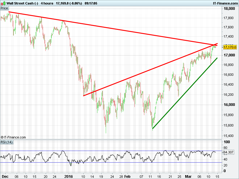 US Dow Jones still hanging around, trying to engineer a breakout at 17200. battling with both rising and falling resistance. Safely above 200-day moving average.