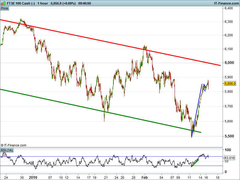 UK 100 still in recovery mode, holding above 5800 thanks to intersecting support from mid-Jan. Potential pause before another leg higher to the ceiling of the longer term downtrend around 6000.