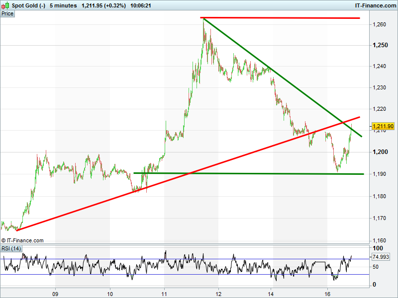Gold has rebounded from drop below $1200 as markets ditch some risk after recent strong gains. However, breached support at $1215 , means potential resistance is close.