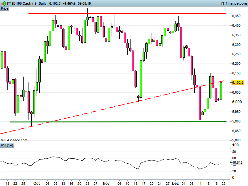 Equities markets are in the green this morning with uncertainty surrounding the Spanish general election being shrugged off thus far and another welcome attempt at a relief rally in play. UK 100 is re-testing rising resistance 6105, a break above which should please bulls looking for a further charge northwards to 6400 and above. DAX is trying for the same, while remaining some way from regaining its own former rising channel. Wall St. has made a strong bounce off support in a 2.5mth sideways range and Gold is nearing December falling highs – again. Will it break out this time, or do the equity market rallies have stronger legs?