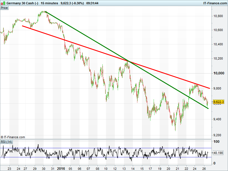 The DAX may have rallied, but it couldn’t break the 2016 downtrend, despite Draghi’s hints at more stimulus traditionally boosting the German index.