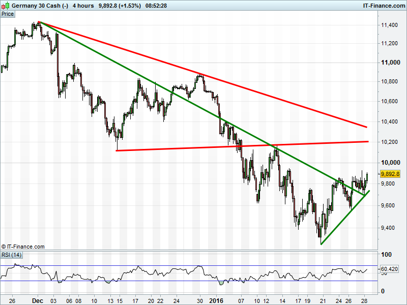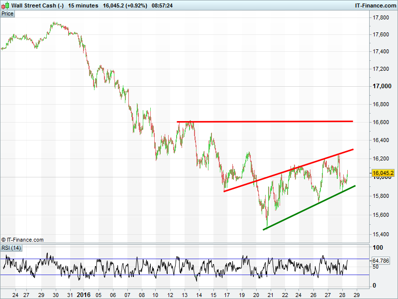 US Dow Jones made a third bounce and broken back above 16000 which to give a rising channel towards 16400.