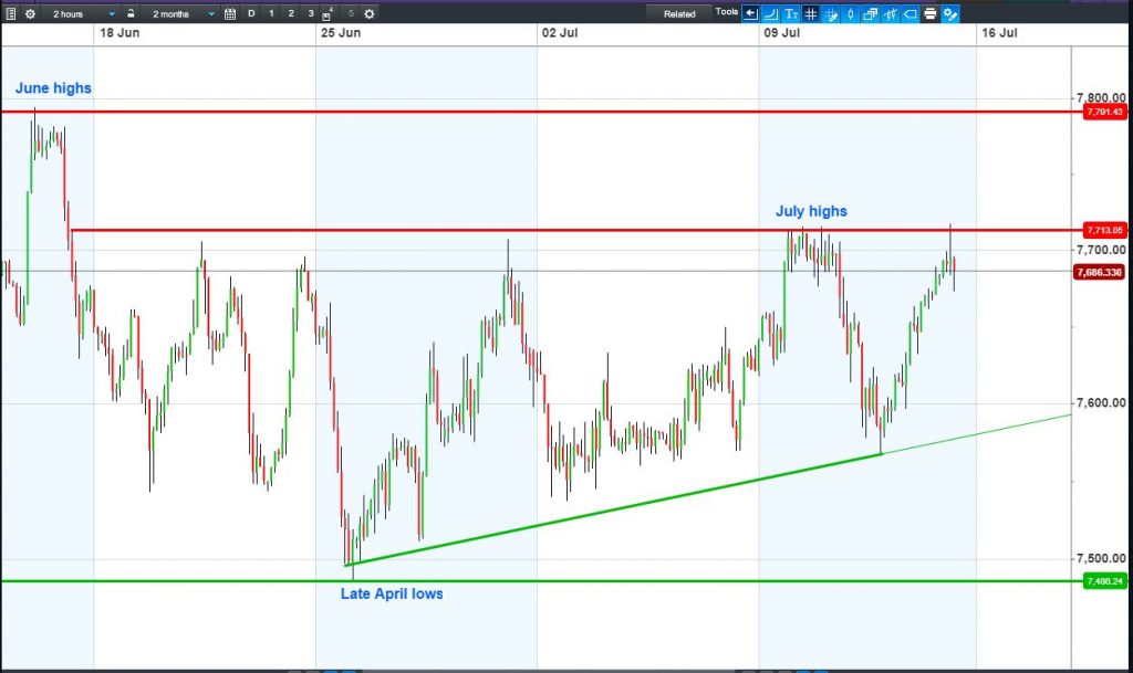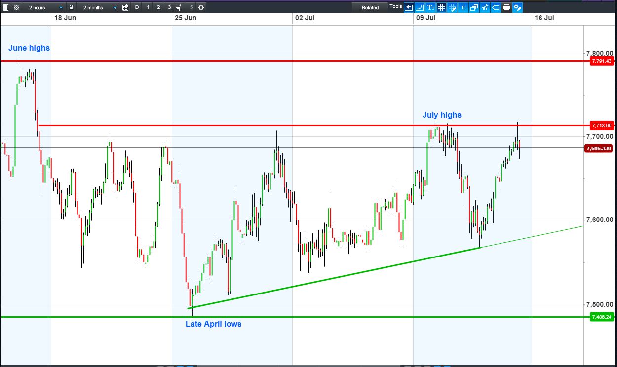 2. Will the index rise towards highs of 7791 (+106pts)?