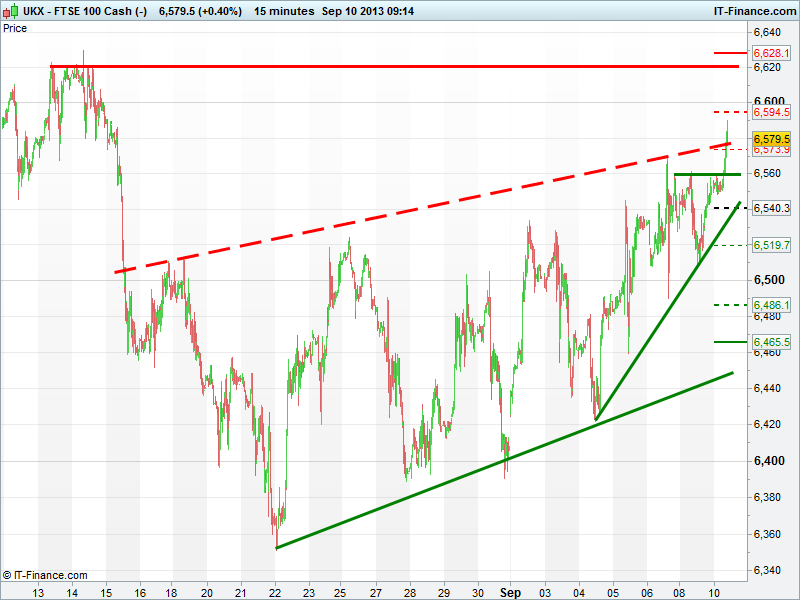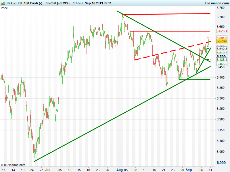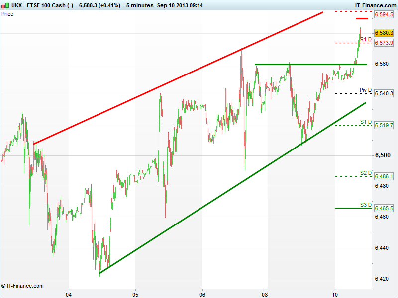 An easing of geopolitical tensions regarding Syria, with Russia backing a proposal for surrender of weapons to avoid US intervention, has given sentiment a further boost, as has a second batch of positive overnight macro data from China. Possibility of Fed tapering just round the corner, but markets look to have priced this in (I still say delayed on latest data, especially jobs, being mixed) and are more concerned with geopolitical stability.
