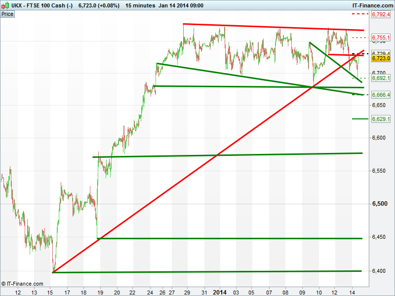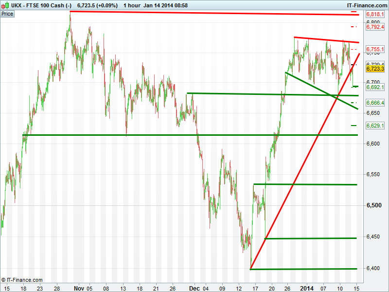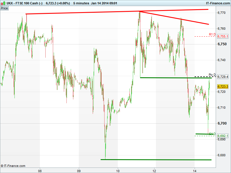 Pivot Point: 6730; Support 1, 2 & 3: 6692, 6666, 6629; Resistance 1, 2 & 3: 6755, 6792, 6818
