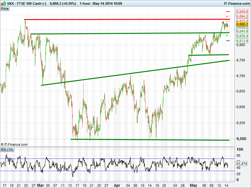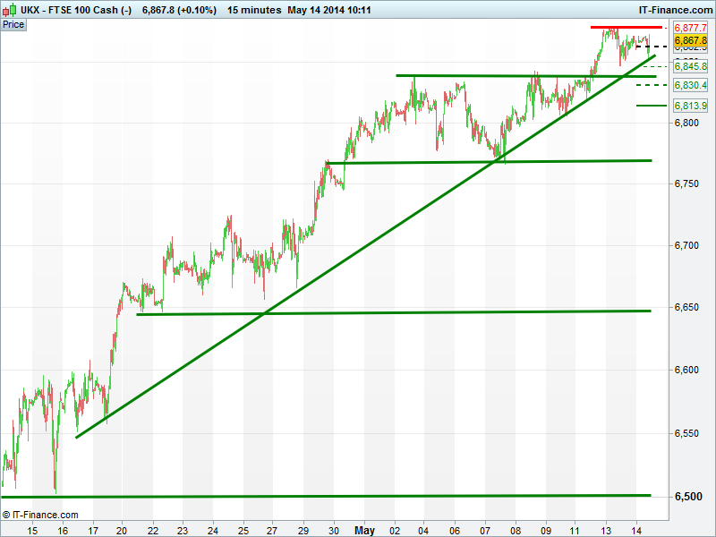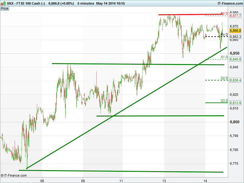 Pivot Point: 6862; Support 1, 2 & 3: 6846, 6830, 6814; Resistance 1, 2 & 3: 6878, 6894, 6910