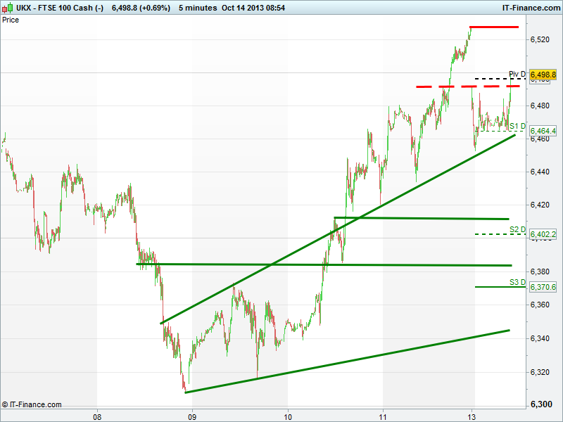 Pivot Point: 6406; Support 1, 2 & 3: 6464, 6402, 6371; Resistance 1, 2 & 3: 6558, 6590, 6652