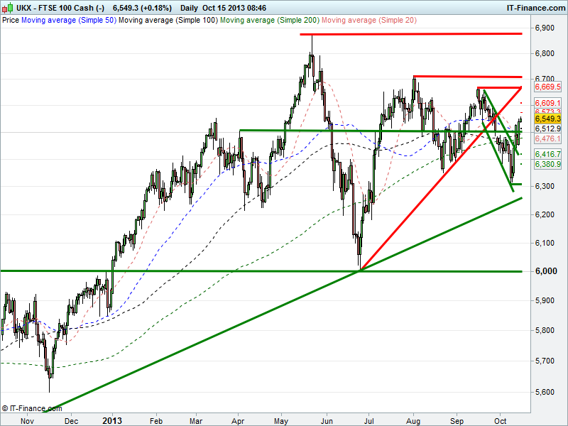 The break above 6500 is good to see and opens up the possibility of upside to mid-September highs of 6665 and possibly even August high of 6705. Hopefully 6500 now reverts to support for any subsequent pull-back, should the US ‘progress’ amount to less than billed.