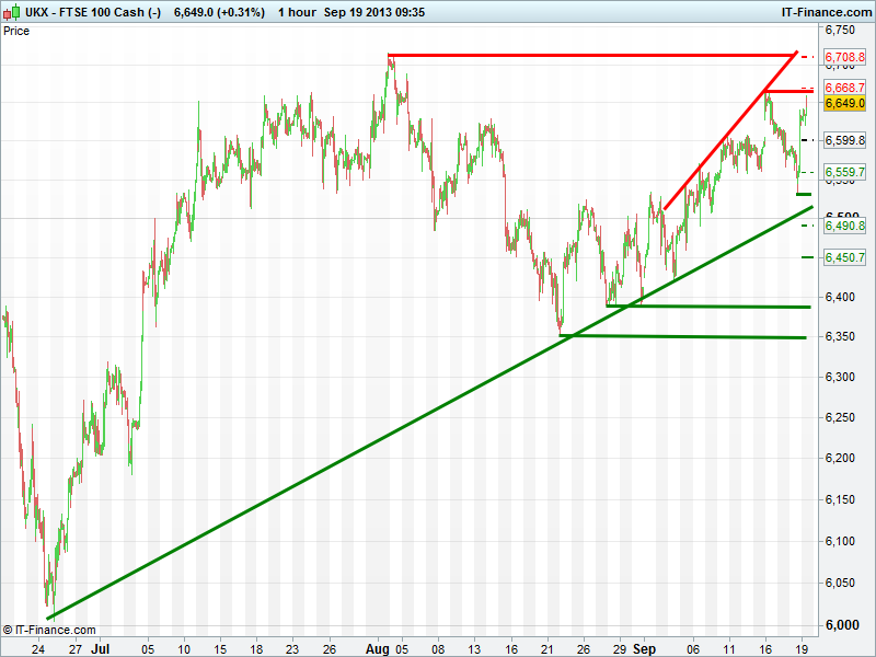 Global markets loving the news with US equities at all-time highs and Asia reacting positively. UK index back up near Monday’s highs 6665, with support moving up to 6600, 6560 and then 6500 rising lows from end-June. A breakout at 6715 would likely open the door to a return to the May and near 1999 high of 6875.