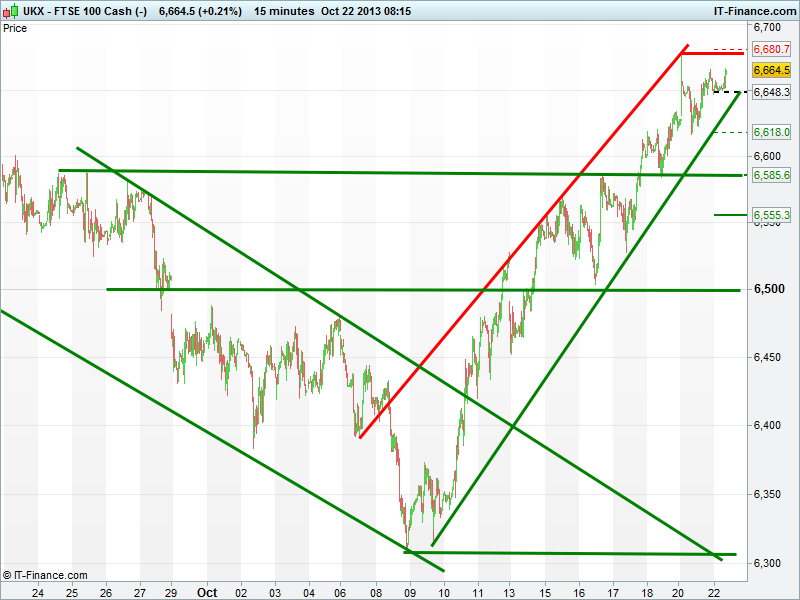 Pivot Point: 6648; Support 1, 2 & 3: 6618, 6586, 6555; Resistance 1, 2 & 3: 6681, 6711, 6743