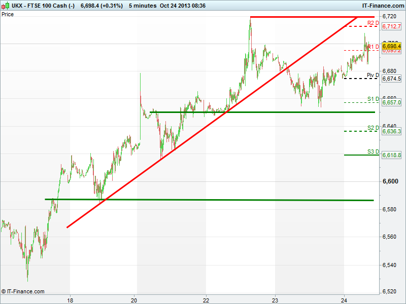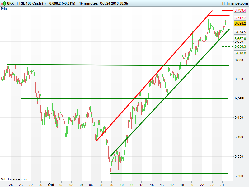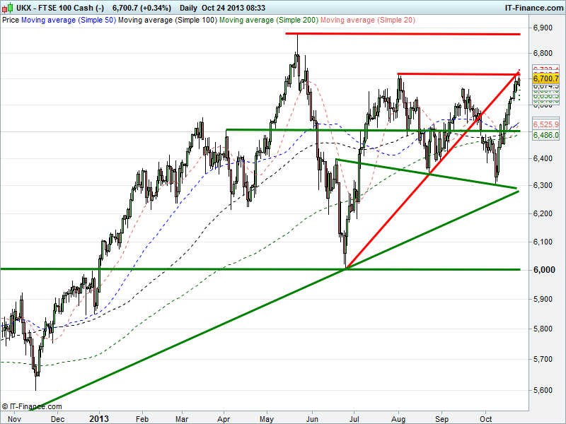 It’s simple. The index needs to make a proper break above 6700 before we can assume that the October rally still has legs and look to May highs. Until then there is a still a chance that, without a new market driver, it loses momentum and tops out at the round number, as proffered yesterday.