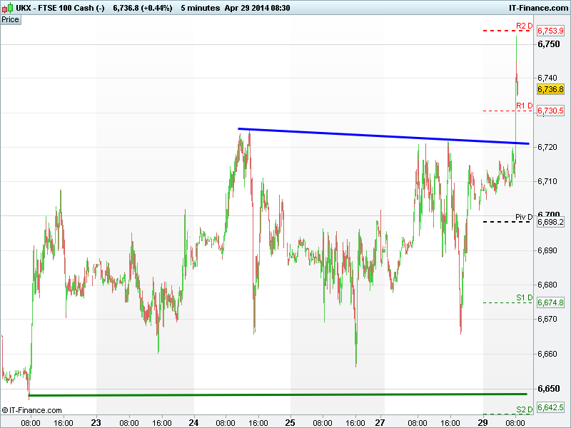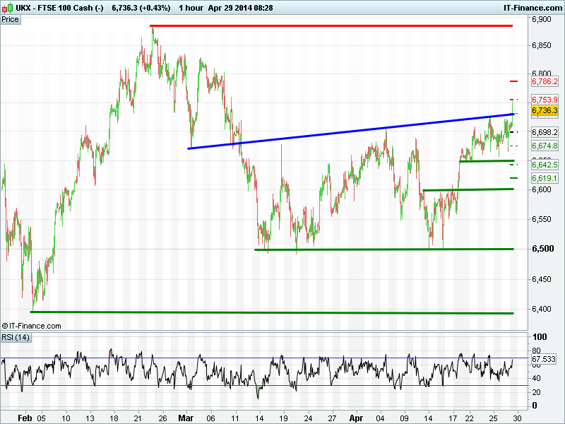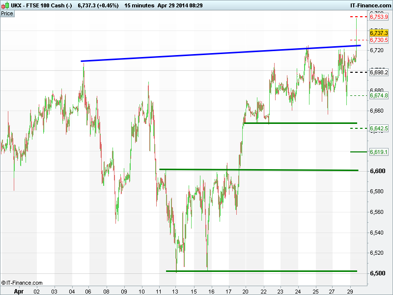 Pivot Point: 6698; Support 1, 2 & 3: 6675, 6643, 6619; Resistance 1, 2 & 3: 6730, 6754, 6786