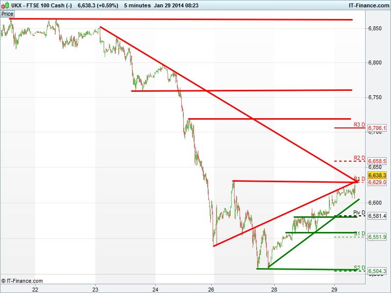 The first obstacle is the R1 pivot level of 6625, followed by 6648 and then 6692. Should 6692 be convincingly breached then a push towards 6670 and 6800 could be on the cards. On the downside we may see support at 6558 followed by 6514 and 6491.