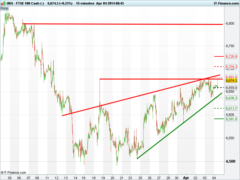 Pivot Point: 6659; Support 1, 2 & 3: 6636, 6614, 6591; Resistance 1, 2 & 3: 6682, 6704, 6727