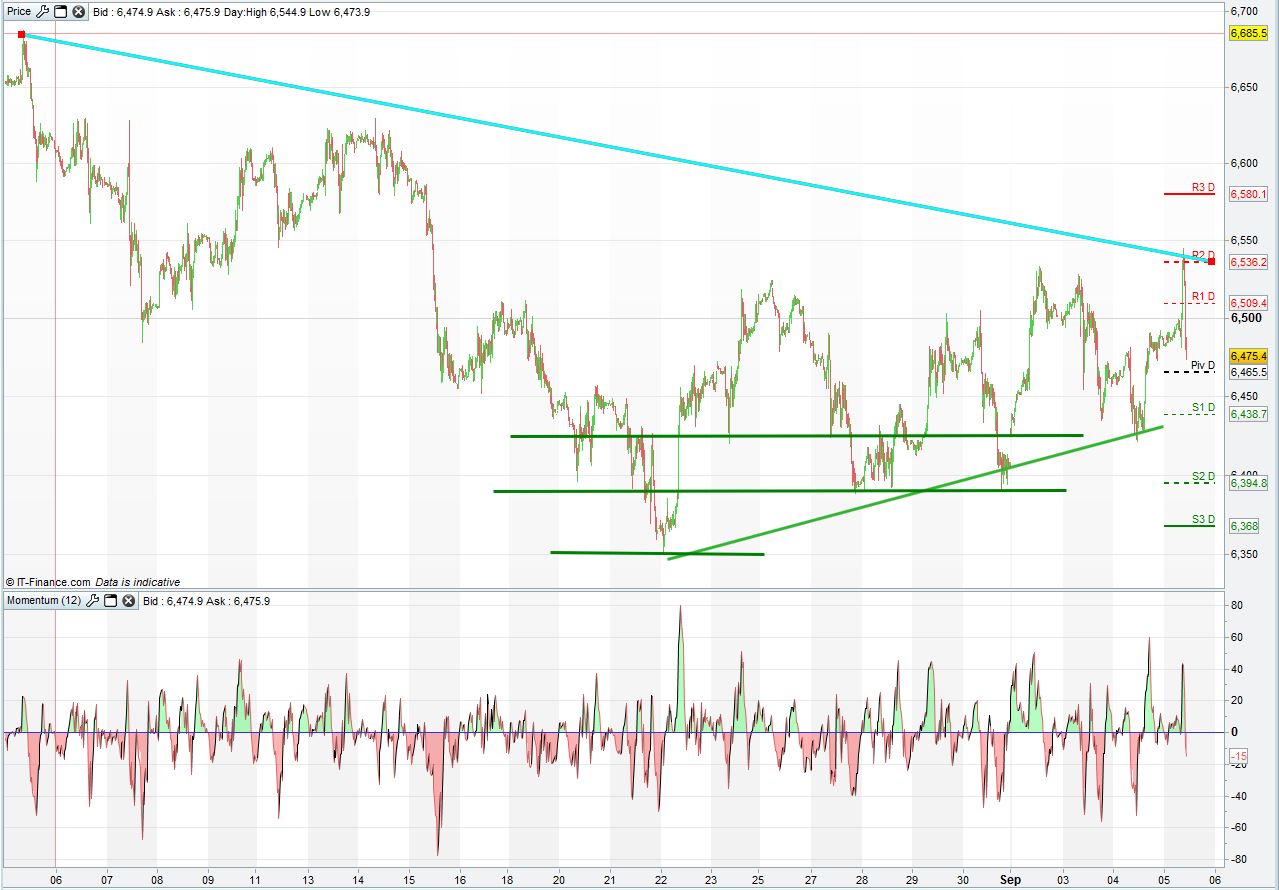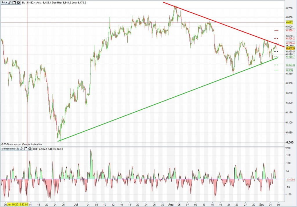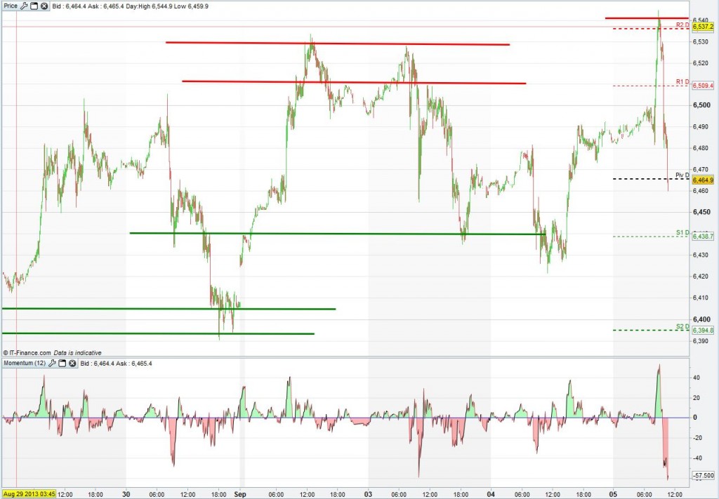 Pivot: 6462; Support: 6438, 6394, 6368; Resistance: 6500, 6580