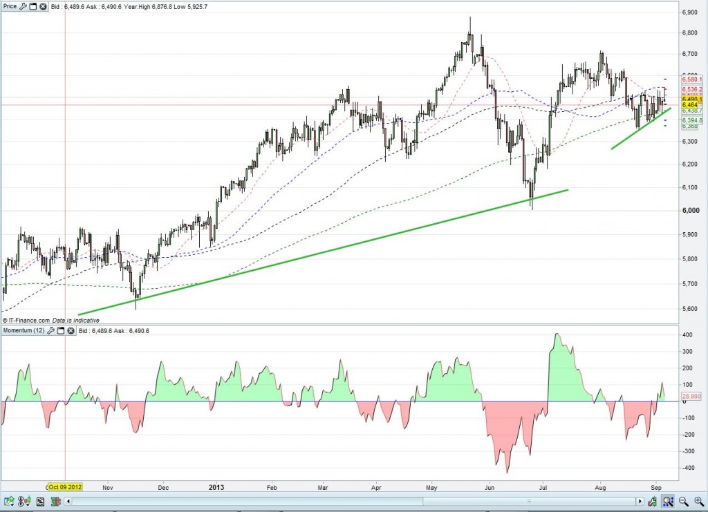 The UK 100 opened on the front foot this morning following on from a strong session in the US. We saw several resistance levels from yesterday breached this morning with the index trading up at 6536, however this level (R2) has proved difficult and subsequently the UK Index has tailed off. 6500 again could be a key level today with a plethora of macro data due for release this afternoon could have some say in the general direction of the market. We could see support on the downside at 6465, 6438 and 6400. On the upside there may be potential resistance at 6500, 6536 and 6580.