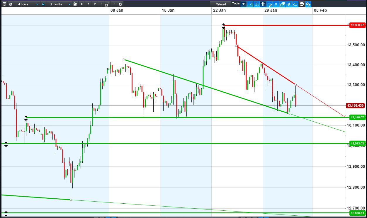 The DAX 30 has been sent back south, from 13300 towards 13140