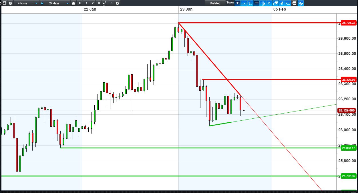 • Potential support: 26100, 26050, 26025, 26000, 25950, 25900