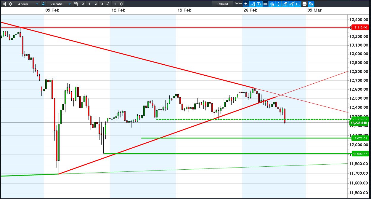 The DAX 30 has broken below 12300 to extend yesterday’s bearish reversal