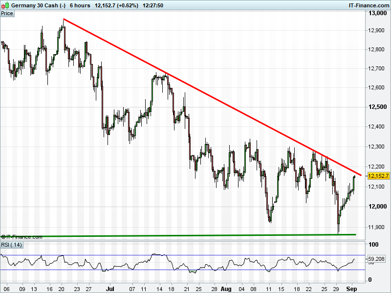 The DAX 30 rebound is fast approaching 2.5-month falling highs resistance at 12165. A weak US jobs report later could hamper, sending USD lower and EUR higher.