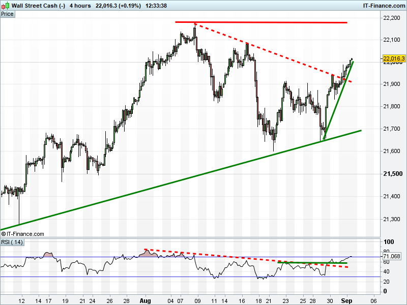 The UK Index 100 has broken above 7440, meaning potential for a bullish triple bottom to 7600. A strong US jobs report later could help, sending USD higher and GBP lower.