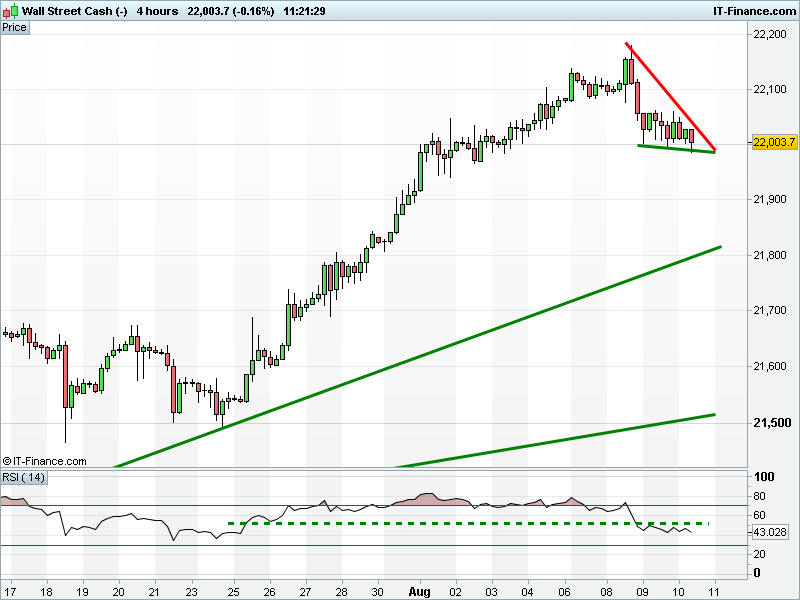 Dow Jones Futures continue to hold around 22000. Beware RSI now in bearish lower half.